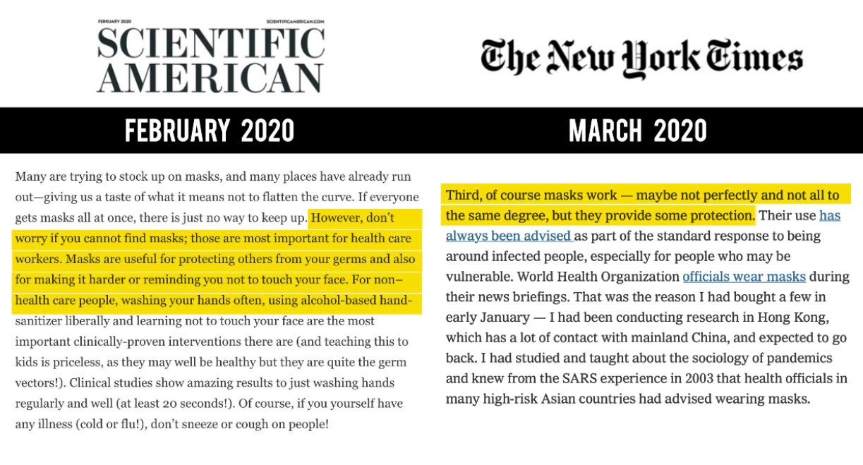 - reversed herself on masks between February and March 2020